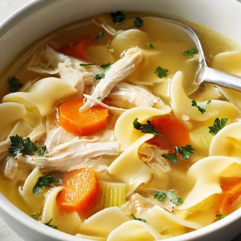 Save to Pinterest The steam rising from my grandmothers kitchen window always meant chicken noodle soup was simmering away. She would let me stand on a chair to stir the pot, explaining that the secret was patience and a good wooden spoon. Now whenever I smell that combination of carrots, celery, and herbs, I am transported back to her tiny kitchen, watching steam fog up the windows while winter raged outside.